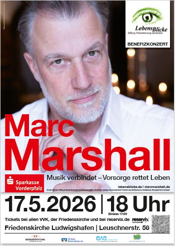 Die Stiftung LebensBlicke lädt herzlich zu einem besonderen kulturellen Ereignis ein: Am 17. Mai .2026 findet in der Friedenskirche in Ludwigshafen ein Benefizkonzert mit dem renommierten Sänger Marc Marshall statt.